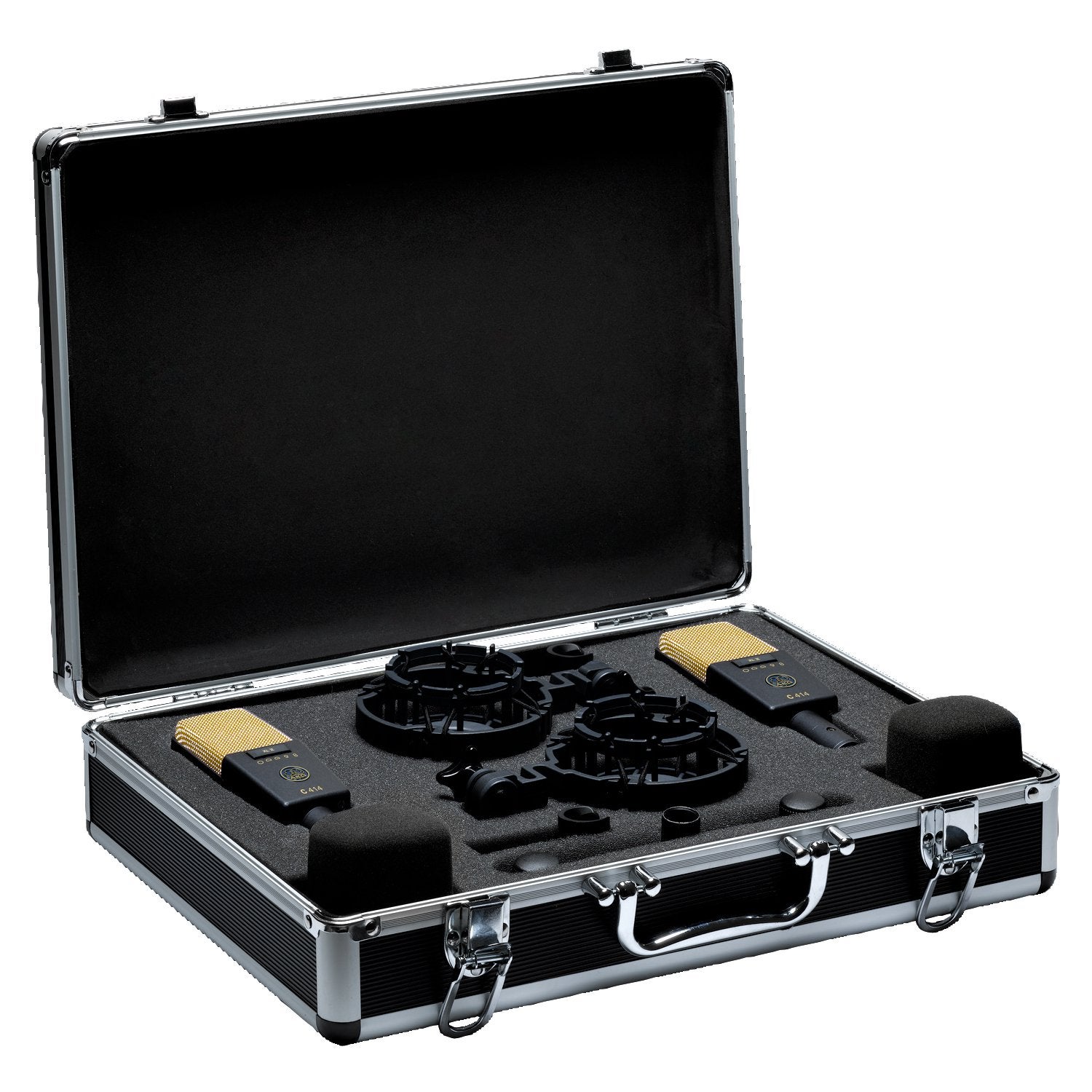 Deze set van AKG bestaat uit twee nagenoeg identieke C 414 XLII’s. Uit duizenden exemplaren wordt, middels een geavanceerde methode, een matchend paar uitgekozen. Hierbij liggen de gevoeligheid en de frequentierespons van de twee exemplaren niet meer dan 1 dB van elkaar vandaan. Het resultaat is een zeer overtuigend stereobeeld dat ademt, door de wederzijds gelijkende opname van ruimte, klank en nuances. Deze set wordt geleverd inclusief stereo-bar en