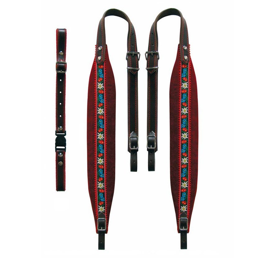 Je accordeonspel wordt nog frivoler met deze draagriemen van Boston in Tiroolse stijl. Ze hebben een bontgekleurd bloemetjespatroon en zijn geschikt voor accordeons met 120 bassen. De set is gemaakt van leer en kleurrijk velours en bestaat uit 2 schouderriemen plus 1 rugriem.