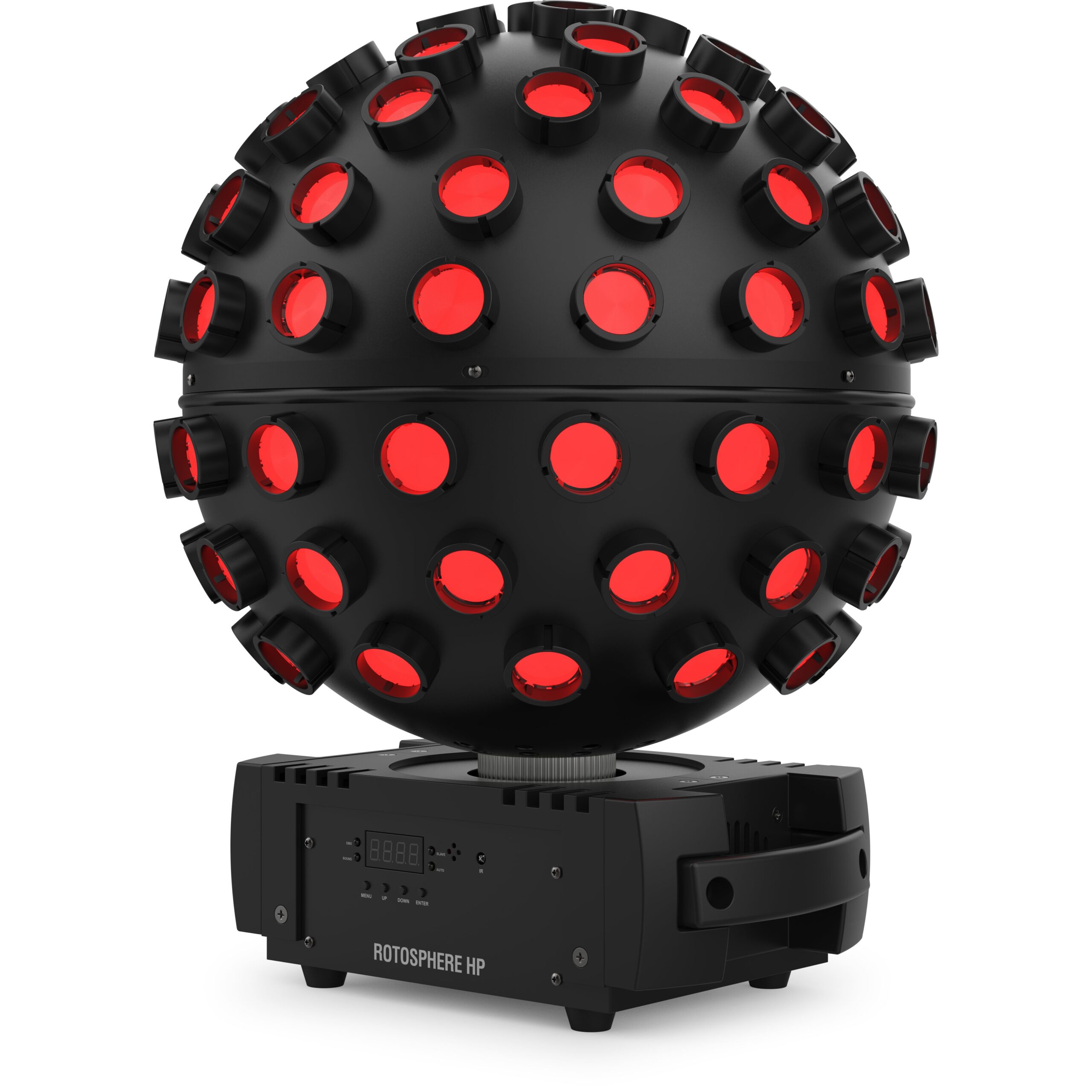 De Chauvet DJ Rotosphere HP is een krachtige, gebruiksvriendelijke spiegelbol feestverlichting die dankzij dual quad-color LEDs (RGBW en CMYO) nieuwe en spannende kleurencombinaties biedt. Deze innovatieve configuratie produceert levendige en gevarieerde kleuren die elke ruimte kunnen transformeren, ideaal voor het creëren van een dynamische of romantische sfeer tijdens evenementen.