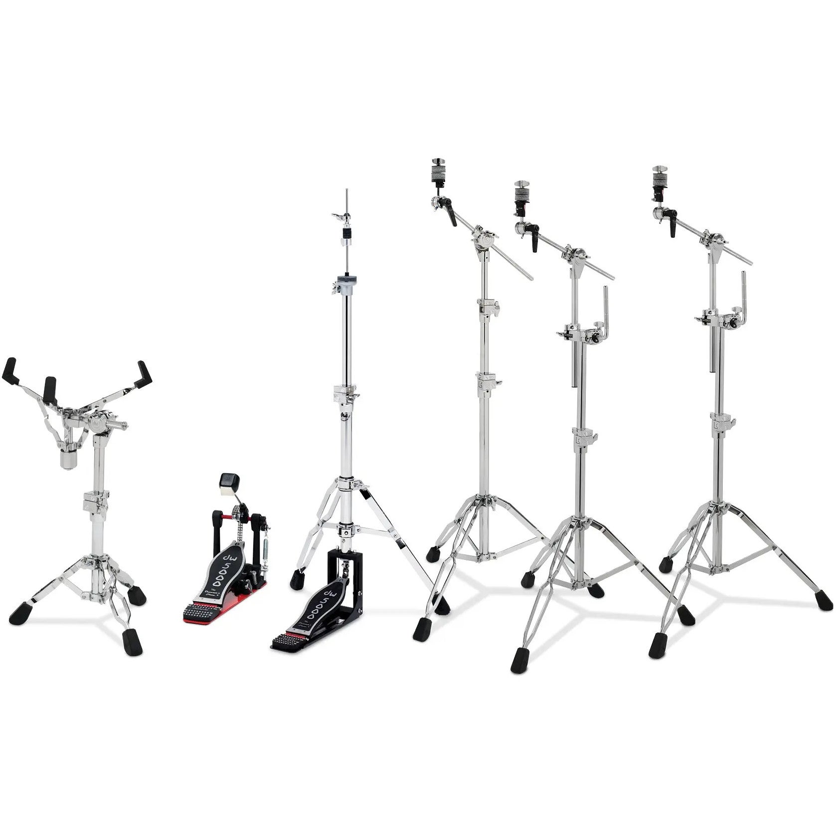 Met dit DW DWCP5000PK5 hardwarepakket haal je een zeer compleet 6-delige set in huis die exclusief bestaat uit hardware van de DW 5000 Series lijn. De hardware is robuust en alle statieven hebben een medium-heavy gewicht, waarmee ze stevig op een podium staan. De hardware is geschikt voor zowel akoestische als elektronische drumstellen, zolang je voor laatstgenoemde maar een kick-pad en hi-hat pad hebt die hierop passen. In het pakket zit het zeer populaire DW 5000AD4 bassdrumpedaal, een snaredrumstatief, een tweepotig hi-hat statief, een DW 5700 bekkenstatief met arm en tweemaal een DW 5791 met tomhouders.