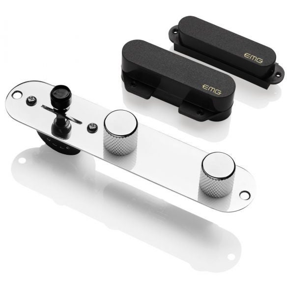 De EMG T System is een moderne interpretatie van die klassieke Telecaster elementencombinatie. Deze set biedt je sowies de twang en punch die je wilt terughoren met een ongekend strakke helderheid en zonder die lastige bromment bijgeluiden. Voor sprankelende sounds zonder schrilheid en met prominentere bassen heb je het RT brug-element, waar je voor warme enkelspoels helderheid en lekker vele boventonen bij de FT hals-pickup moet zijn. Speel je graag met overdrive of distortion? Dan kun je deze singlecoils daar ook volledig probleemloos en geïnspireerd mee gebruiken. Een breed frequentiebereik en een lekker vol klankfundament komt met name door de Alnico-magneten en het speciale ontwerp van de spoelen, windingen en elementbehuizing. Alles is snel en simpel te installeren met het soldeervrije bedradingssysteem van EMG en alle benodigde bijgeleverde accessoires. De T System wordt geleverd met een prewired TE-stijl control plate met daarop beide potmeters verbonden via een