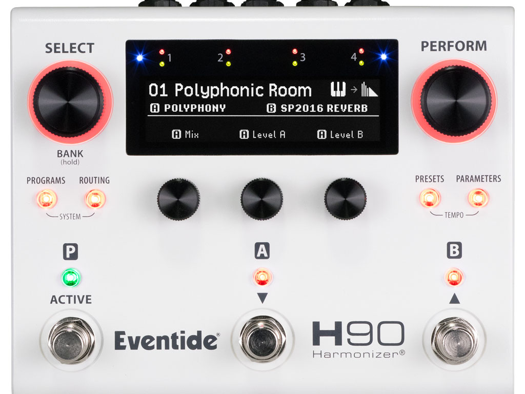 De H90 Harmonizer® is Eventides multi-effectpedaal van de volgende generatie. De intuïtieve gebruikersinterface is speciaal voor muzikanten ontworpen, waardoor de H90 alles heeft wat je nodig hebt om je te laten inspireren, van kant-en-klare effecten tot volledig nieuwe experimentele sounds. Ontdek waarom topartiesten en producers al jarenlang kiezen voor Eventide en probeer de 62 effectalgoritmen en honderden programmacombinaties, speciaal geselecteerd voor een verscheidenheid aan instrumenten en genres. Bovendien hebben we de H90 ontworpen met uitgebreide I/O en flexibele routeringsopties, waardoor hij perfect een centrale plaats kan innemen in je setup. Nieuwe technologie, nieuwe effecten De moderne, op ARM-processoren gebaseerde architectuur is afgeleid van 's werelds krachtigste effectprocessor en Eventides vlaggenschip, de H9000 Harmonizer. Deze architectuur maakt de weg vrij voor nog meer geavanceerde effectverwerkingstechnieken. Het pedaal biedt dus niet alleen de iconische