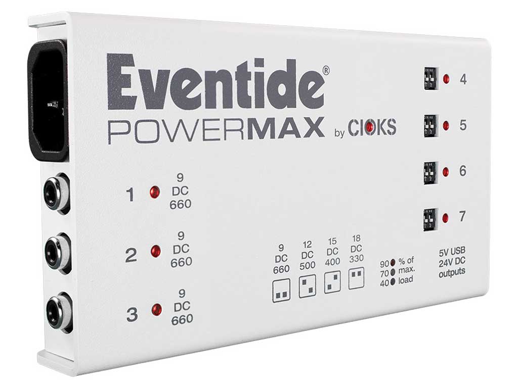 De Eventide PowerMAX V2 zet de nieuwe standaard voor veelzijdigheid en prestaties in een compacte, lichte en eenvoudig te uitvoering pedalboard-voeding. Het ultramoderne ontwerp van PowerMax zorgt ervoor dat uw pedalen maximale betrouwbaarheid bereiken. PowerMax kan tot 7 krachtige effectpedalen van stroom voorzien en uw smartphone of tablet opladen. Met een gewicht van slechts 0,5 kg en 2,54 cm dik is het een krachtige aanvulling op H9 of ieder ander pedaal op je pedalboard. Beschikt over een state-of-the-art universele voeding (85-265V) die wereldwijd kan worden gebruikt.