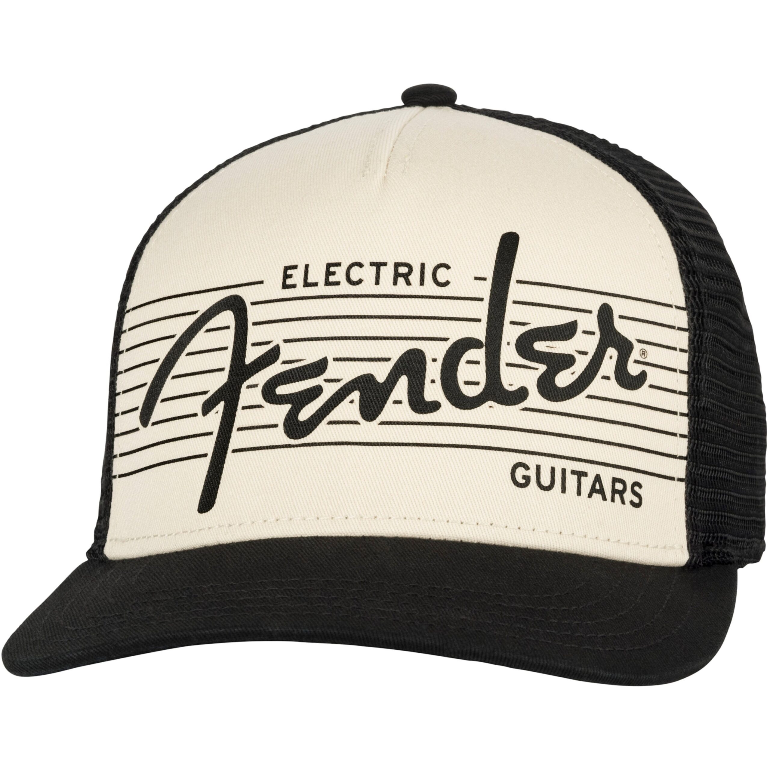 Met deze pet van Fender doe je elke liefhebber van dit iconische label een plezier! Oorspronkelijk begonnen met amps en daarna elektrische gitaren, brengt Fender de laatste jaren ook heel wat items die je als fan maar wat graag ziet, zoals T-shirts, hoodies en petjes, zoals deze Electric Guitars Hat. Uitgevoerd in zwart met ecru (cream) en zó verstelbaar dat hij vrijwel iedereen past.