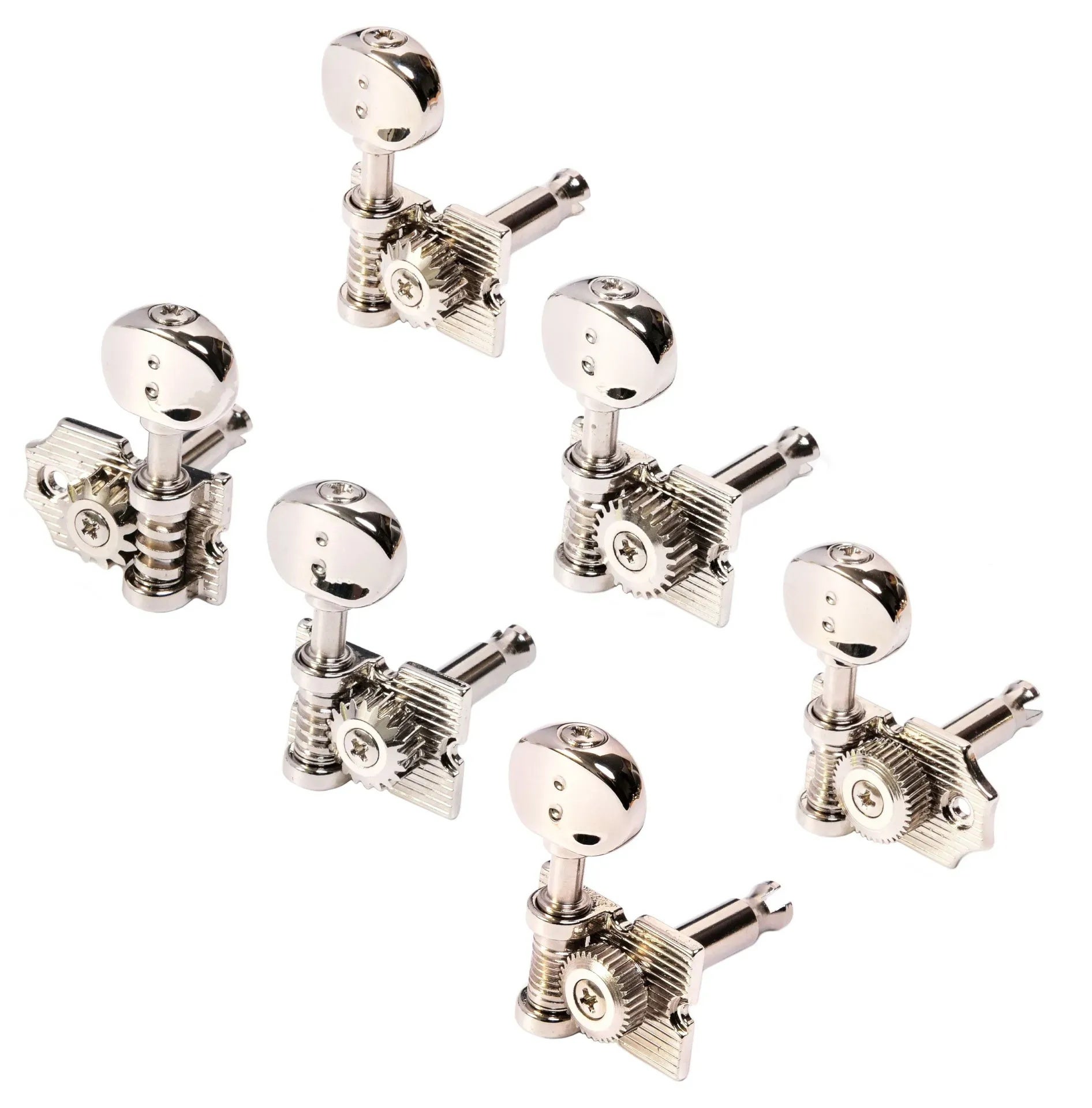 De Graph Tech PRN-4624-N0 Ratio Gitaarstemmers zijn een uitstekende keuze voor gitaristen die op zoek zijn naar snelheid en precisie bij het stemmen. Deze tuners hebben een vintage waffle-back design met een open achterkant en passen perfect op gitaren met een 11/32″ peghead gat. Elke stemmechanisme heeft zijn eigen gear ratio, afgestemd op de respectieve snaar, waardoor het mogelijk is om snel en nauwkeurig te stemmen met slechts een halve draai van de knop. De tuners zijn ideaal voor de baszijde (links) van een 6-in-Line gitaarconfiguratie.