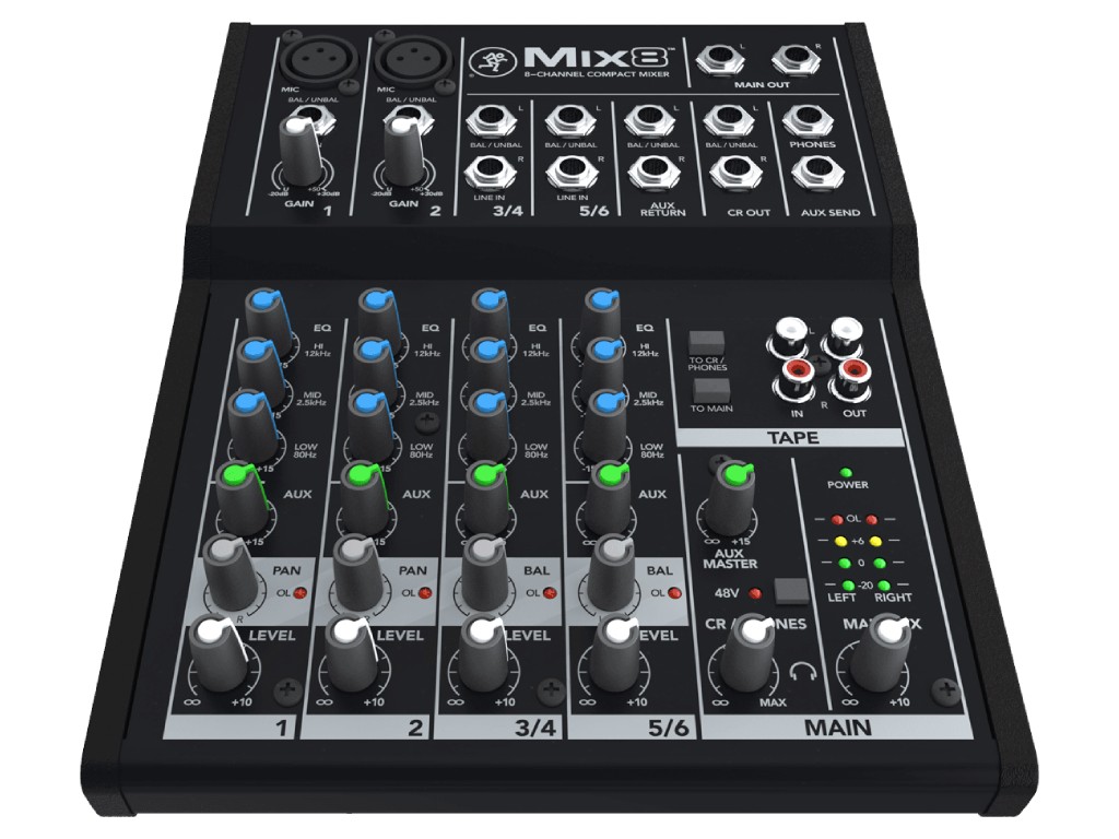 De Mackie Mix8 mengpaneel is een compacte mixer uit de “Mackie Mix Compact” serie. Deze professionele doch betaalbare mixers maken gebruik van hoge kwaliteit componenten, een stevige bouw en zijn enorm breed inzetbaar. De Mackie preamps en hoge headroom verzekeren prettig gebruik.