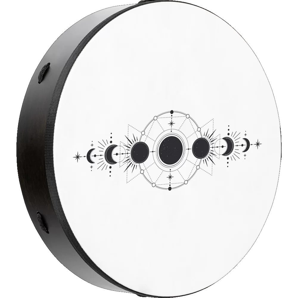 Of je hem nu wil gebruiken voor muzikale doeleinden of meditatieve doeleinden, deze Meinl Sonic Energy Ritual Drum is voor beide geschikt. Deze frame drum is gemaakt van een populier houten frame en heeft een diameter van 16 inch. Deze Ritual Drum levert een diep en gecontroleerd geluid, perfect om een ritme of ‘pulse’ aan te geven bij wat rustigere muziekstijlen of bij een sound-bath meditatie. Deze frame drum wordt geleverd met een mallet, heeft een True Feel synthetisch vel met een maan-fasen artwork en is volledig vegan!