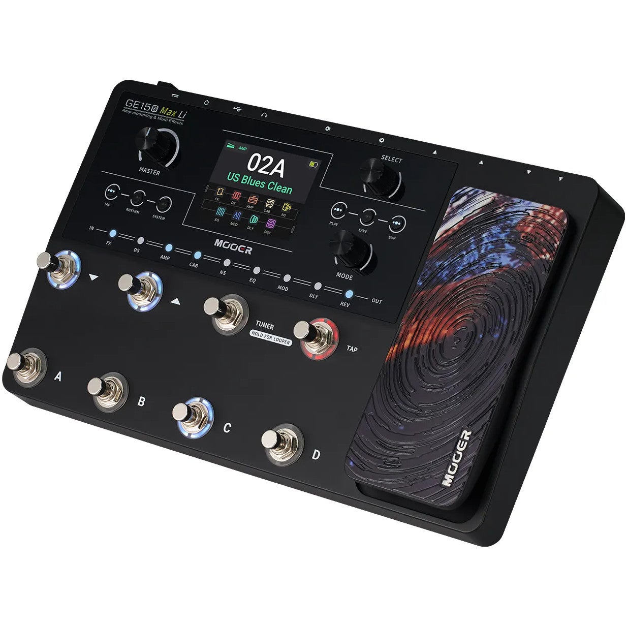 De GE150 Max Li multi-effectpedaal van Mooer is eenvoudig te bedienen. Er zijn maar liefst acht voetschakelaars om je meer controle te geven over presets en met een CTRL-modus die het mogelijk maakt om voetschakelaars toe te wijzen aan individuele modules binnen elke preset. Daarbovenop is er een spillover-modus die reverb- en delay-effecten bij het wisselen van presets soepel doet uitfaden. Door de stereo gebalanceerde XLR-uitgangen kan je het apparaat gebruiken over lange afstanden in live-opstellingen, zonder signaalverlies. Deze multi-effectpedaal bevat 200 preset-slots en 55 voorgeïnstalleerde voorversterkermodellen. Je kunt ook andere versterkers en IR-samples laden. Een looper van 80 seconden, een drumcomputer, een tuner en een speciale tap-tempo-voetschakelaar zijn ingebouwd. Deze uitvoering is uitgerust met een geïntegreerde lithiumbatterij voor maximaal 9 uur draadloos gebruik.