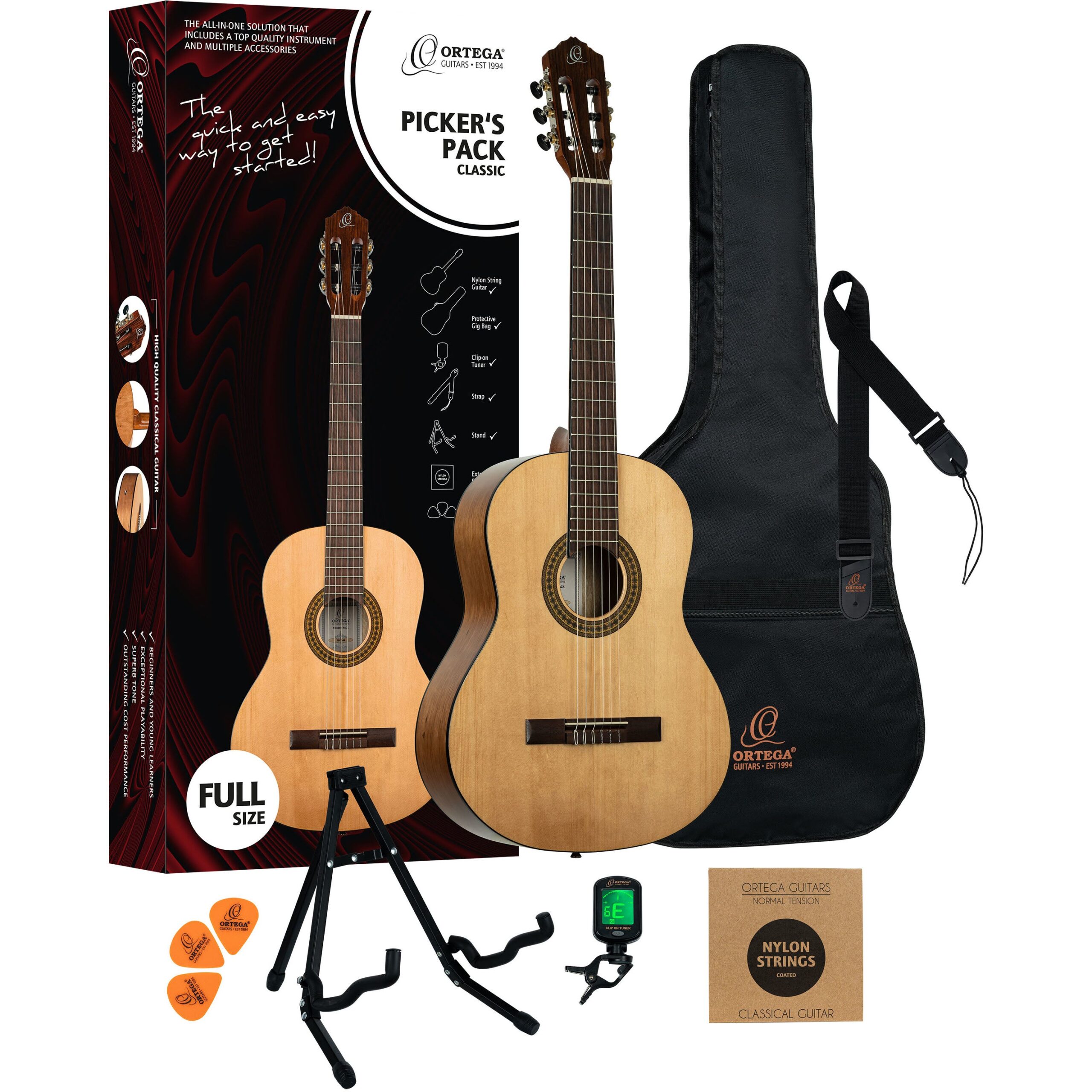 Goed materiaal is al een eerste goede stap in de richting van een nieuwe vaardigheid, zoals gitaarspelen. In het Ortega RPPC44 Guitar Picker’s Pack vind je in de eerste plaats natuurlijk een. Die heeft een sparren bovenblad, een body van catalpa en een mahonie hals. Deze houtsoorten zorgen voor een heldere sound en een klassieke look, afgewerkt met een gloss finish. Verder vind je in deze set alle accessoires die een beginnend gitarist nodig heeft, zoals een tuner, plectrums en een draagband. Er zit ook een stevige gigbag in het pakket, een statief om je gitaar veilig te stallen tussen het oefenen door, en een reserve snarenset. Een prima startpunt voor het waarmaken van je muzikale droom!