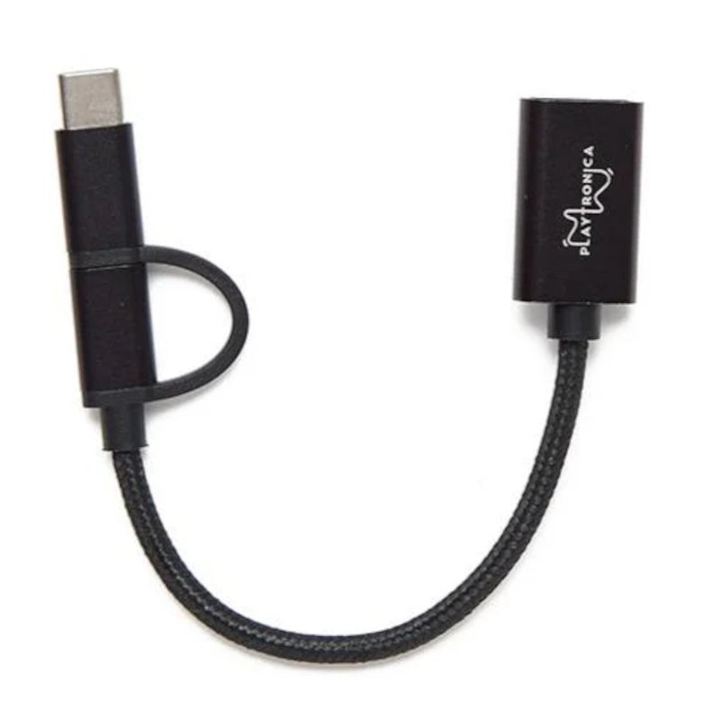 Deze Playtronica USB Adapter is een verloopkabeltje. Je kunt hiermee je Playtron of TouchMe aansluiten op een Android-device of Macbook. Dit schept mogelijkheden voor mobiele gebruikers. De plugjes zijn micro-USB en USB-C.