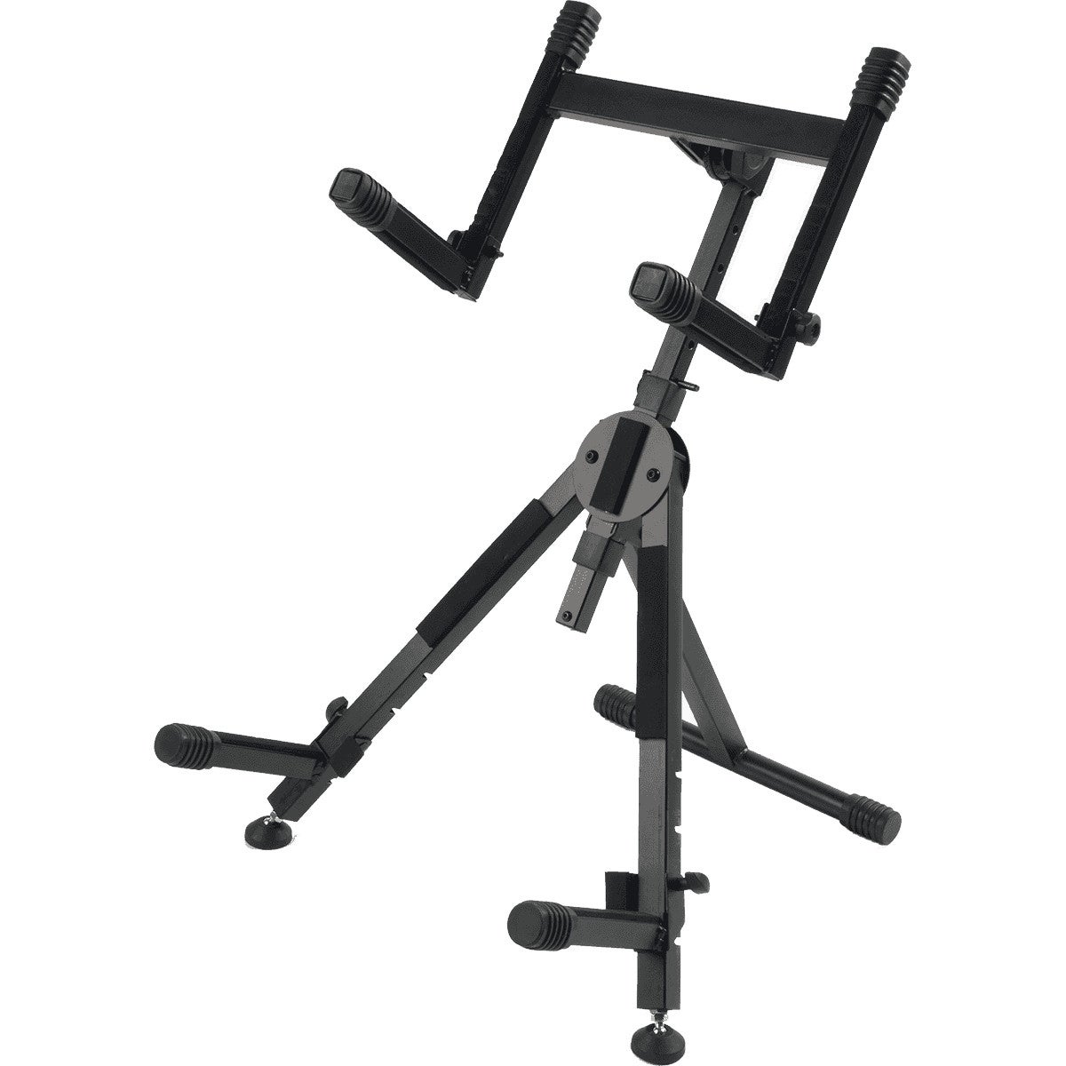 Je wilt twee gitaarversterkers wat hoger plaatsen en uiteraard wil je dat deze stevig op hun plaats blijven staan. De Quiklok BS625 komt als geroepen: dit is een robuust versterkerstatief dat in de hoogte verstelbaar is en waar je bijvoorbeeld bovenaan een gitaartop en onderaan een cabinet op kunt plaatsen. Je kunt er ook voor kiezen om enkel bovenaan of enkel onderaan een grotere comboversterker te plaatsen. Uiteraard kan dit statief ook dienen voor bijvoorbeeld keyboardversterkers, monitors of andere luidsprekers. De versterkers staan gekanteld zodat je het geluid optimaal kunt horen. Deze solide stalen stand is voorzien van een zwarte coating en uitgerust met rubber aan de uiteinden om de versterkers te beschermen. Het statief kan volledig ingeklapt worden zodat je het zorgeloos kunt vervoeren.