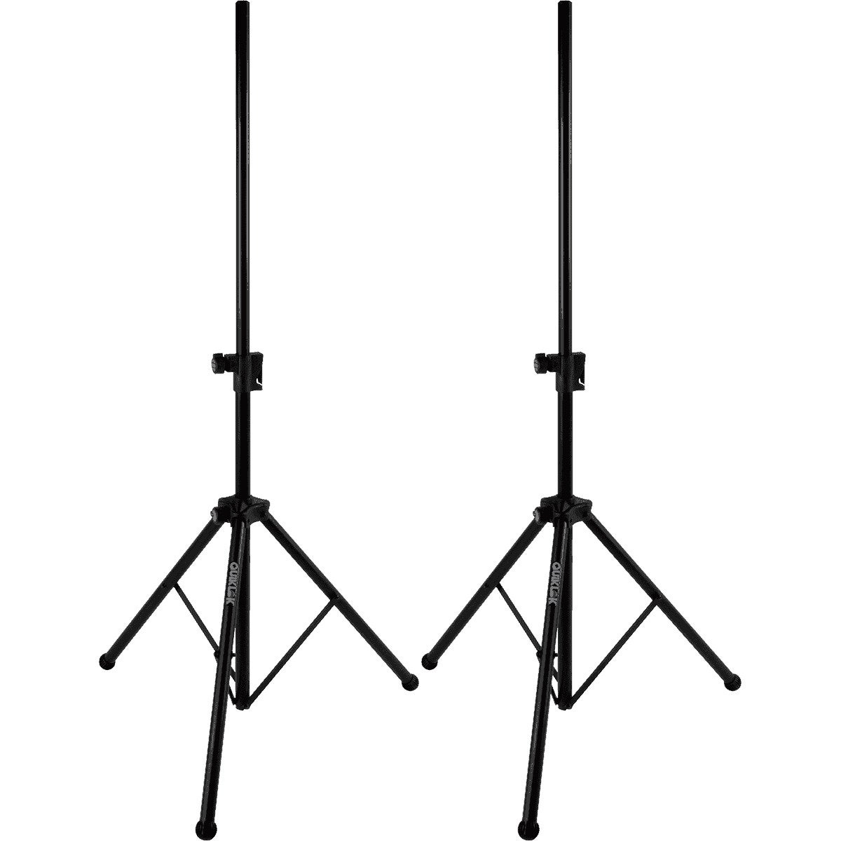 Gemak en veiligheid gaan hand in hand bij de Quiklok SP282BK. Dit is een set van twee luxueuze aluminium speakerstatieven die zijn uitgerust met het “Easy Lift”-systeem. Dankzij dit systeem kan je de hoogte van het statief zonder enige moeite verstellen met slechts een druk op de knop. Een sterke aandraaiknop is voorzien zodat de gewenste hoogte gegarandeerd blijft en ook aan een zelfvergrendelende veiligheidspin is gedacht. Onderaan de solide statieven, die tot maar liefst 56 kilogram kunnen dragen, zijn moderne rubberen aangebracht zodat ze stevig op hun plaats blijven staan. Extra adapters voor luidsprekers met een 38 millimeter-gat worden meegeleverd.