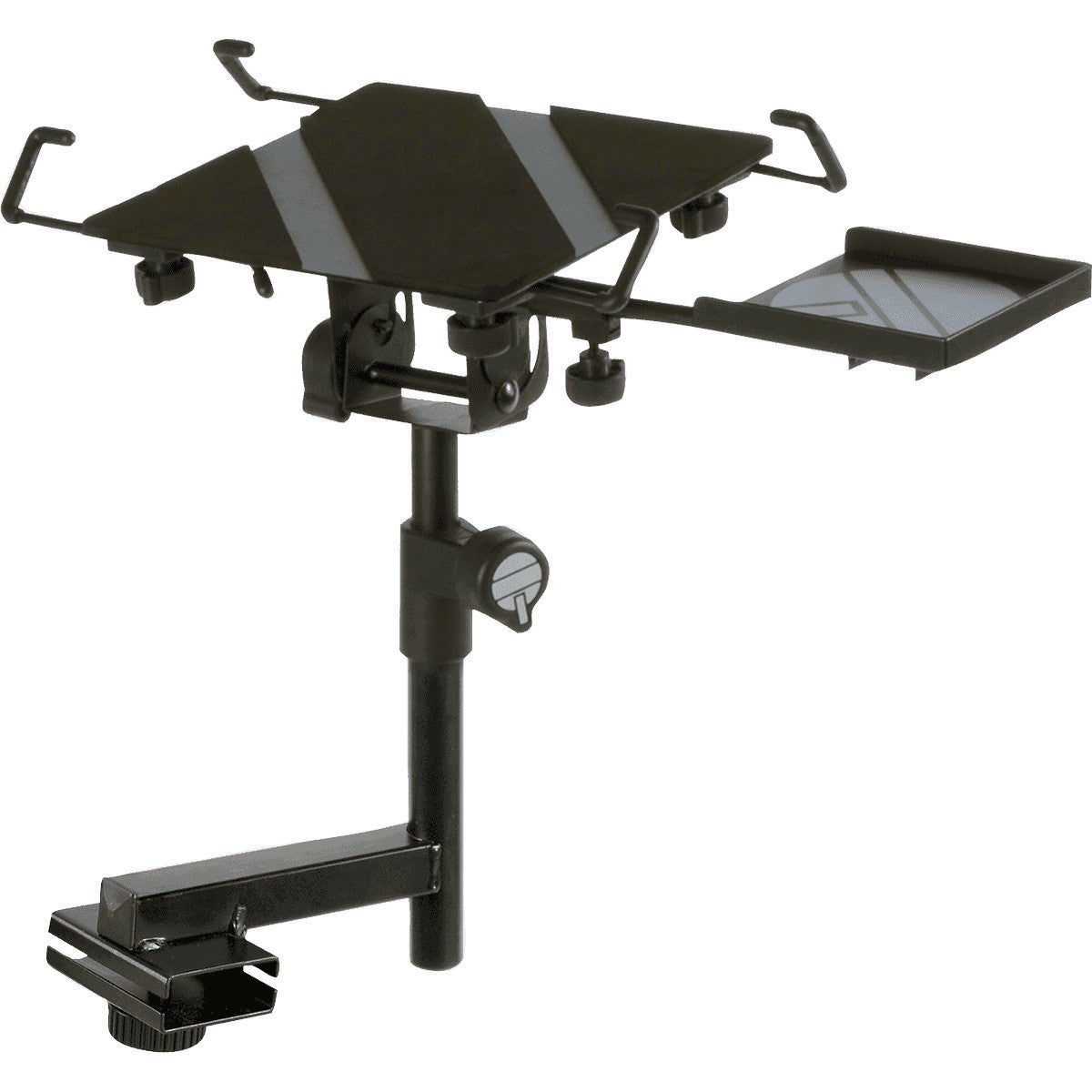De Z733 van Quiklok is een laptophouder voor bevestiging op een keyboard standaard die je ook kunt gebruiken om een kleine mixer of andere apparatuur op te plaatsen. De vier stoppers kan je in de breedte en in de diepte verstellen zodat vrijwel elke laptop past en de USB-poorten en andere aansluitingen mooi vrij blijven. Je kan het blad in de hoogte verstellen, kantelen en draaien tot je de perfecte positie bereikt. Let wel op, want je hebt Z/720 of Z/720L accessoirestangen van Quiklok nodig om deze laptophouder aan een statief te bevestigen.
