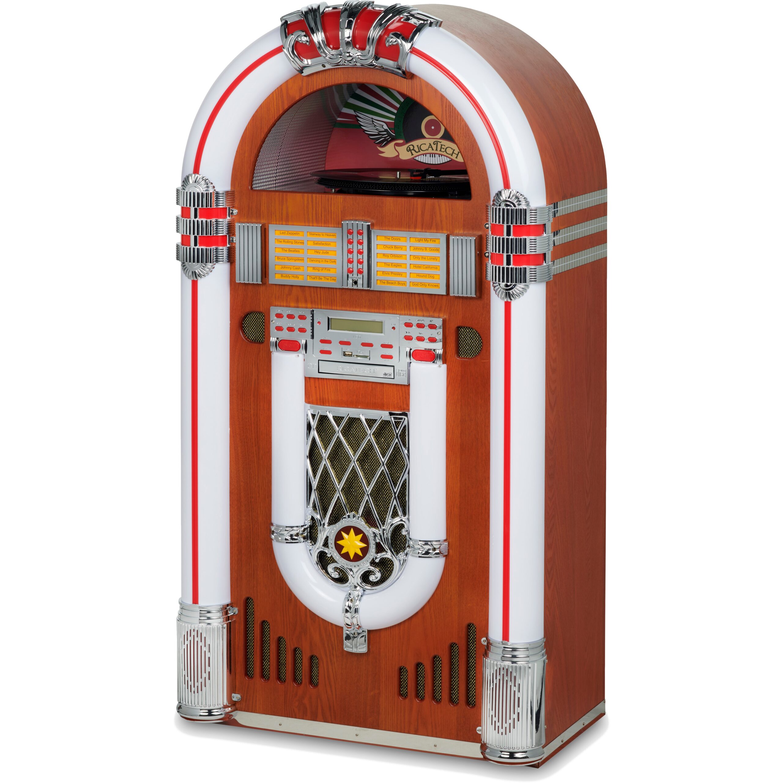 Een echte klassieker met de eigenschappen van de moderne muziekliefhebber, dat is de Ricatech RR2500 Classic LED Jukebox. Want waarom zou je vijf verschillende afspeelapparaten kopen als je het ook met één kan? Zo is het mogelijk om op de Ricatech RR2500 je favoriete platen en CD’s af te spelen, of gebruik te maken USB- en SD-geheugen voor je digitale muziek. Tevens is er een 3.5 mm TRS Aux-ingang aanwezig voor het aansluiten van je smartphone, tablet of andere MP3-speler. Dit kan overigens ook draadloos via Bluetooth! En hebben we al vermeld dat je ook op de RR2500 naar zowel digitale als analoge radio kan luisteren? Vergeleken met zijn grotere RR4000 Premium broeder heeft de RR2500 iets kleinere luidsprekers, maar beschikt wel over een hoofdtelefoonuitgang ter compensatie!