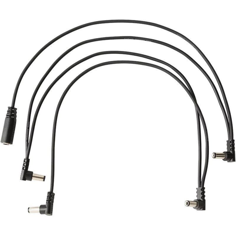 Deze RockBoard Flat Daisy Chain Power Cable 1-4 haaks stelt je in staat om tot 4 gitaareffecten van stroom te voorzien met één kabel. De kabel heeft in totaal 4 haakse 5.5 x 2.1 mm barrel plugs en één rechte plug die je op de voeding aansluit. De lengte tussen de pluggen is in totaal 30 cm, waardoor je nog aardig wat speling hebt. Je splits met deze kabel je voeding naar meerdere voedingsuitgangen, zonder stroomverlies.