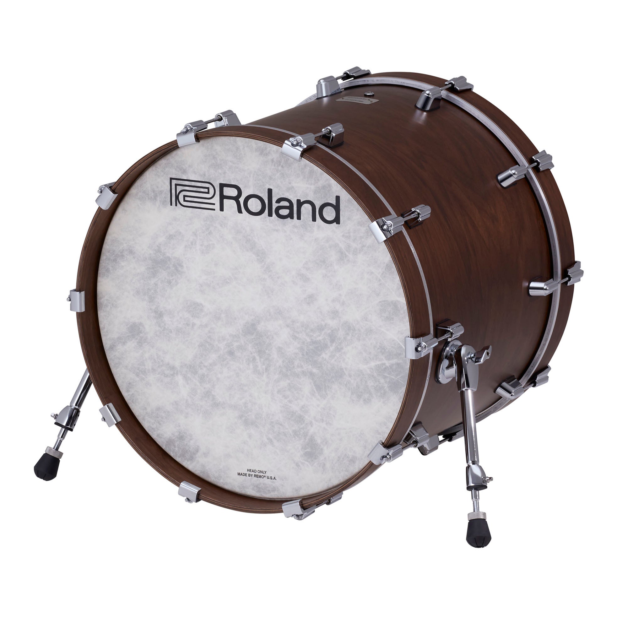 De Roland KD-22 is een bassdrum-pad met spelgevoel van een akoestische bassdrum. Door de ketel en het resonantievel ervaar je een beetje tegendruk; net als bij een echte bassdrum. Het triggeroppervlak is iets groter dan bij de voorganger waardoor het makkelijker is om een twinpedaal te gebruiken. Met deze bassdrum-pad is je elektronische drumstel niet meer veroordeeld tot alleen studioruimtes en repetitieruimtes. Dankzij het overtuigende akoestische uiterlijk kun je ook op het podium voor de dag komen met de KD-22. Bovendien moet je ergens de naam van je band op kwijt kunnen, het 22 inch resonantievel biedt genoeg plek.