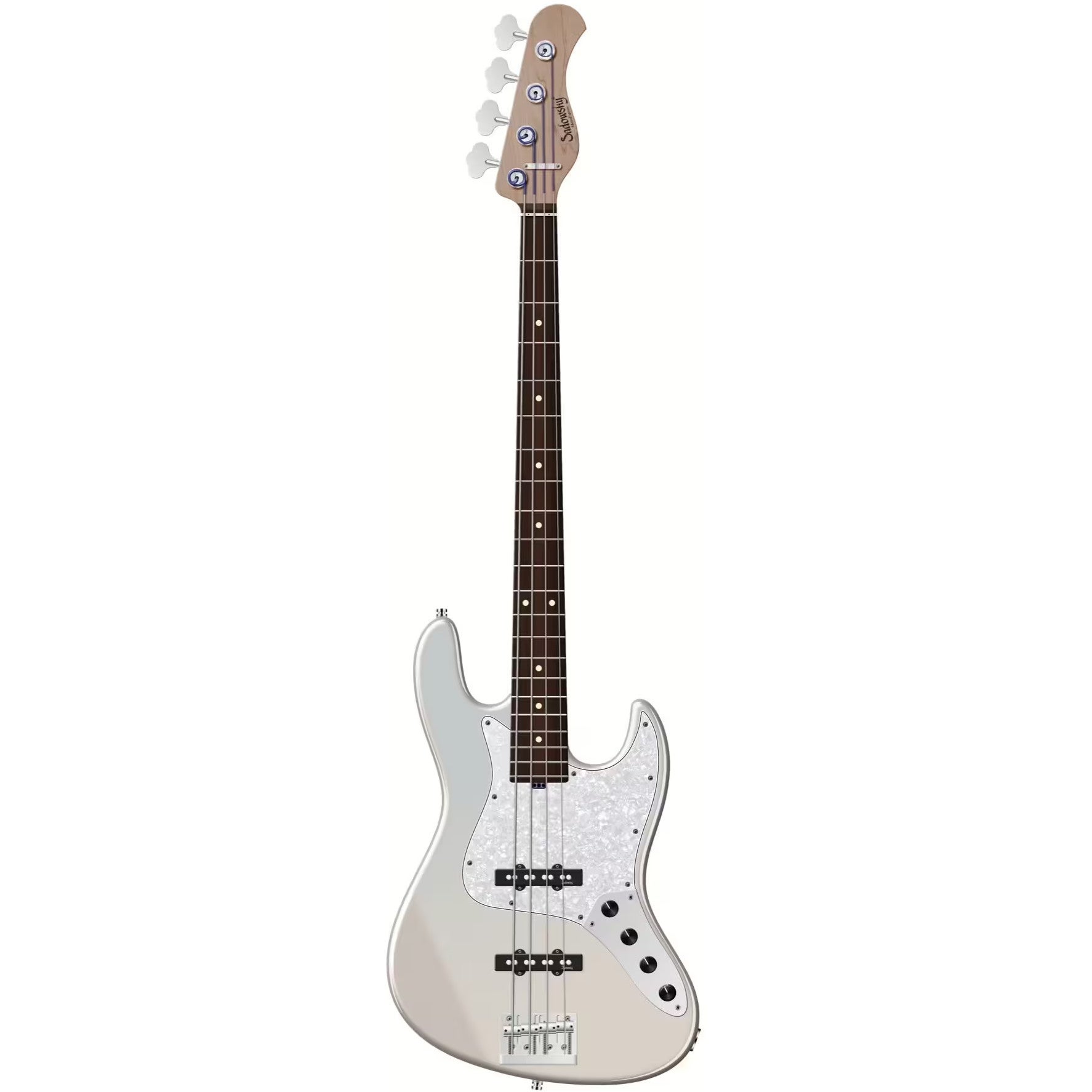 De Sadowsky MetroExpress 21-Fret Vintage J/J Bass is een lichtgewicht elektrische basgitaar die gemaakt is van okoume hout. Dankzij de passieve, hum-cancelling J-Style pickups en de speciale elektronica van Sadowsky mag je rekenen op een krachtige bass-sound met sterk aanwezige middentonen en een luchtige treble. Bedieningselementen voor volume, balans, treble en bas zijn voorzien en deze laatste heeft een push/pull-functie voor preamp-bypass. De hals van roasted maple, donkere toets van morado en de lichte stemmechanieken met open tandwiel maken dit mee tot een comfortabel en vlot bespeelbaar instrument. Dit is de versie in Solid Paper White Metallic met een witte slagplaat. Een praktische en stevige gigbag met rugzakriemen krijg je er meteen bij.
