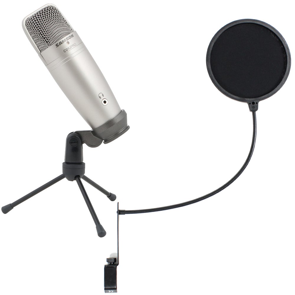 De Samson C01U Pro usb condensatormicrofoon en de Devine SPS 150 popfilter zijn een gouden combinatie. je kunt nu vrijuit zingen, rappen of podcasten zonder dat de microfoon overstuurt bij ‘P’ en ‘B’ klanken.