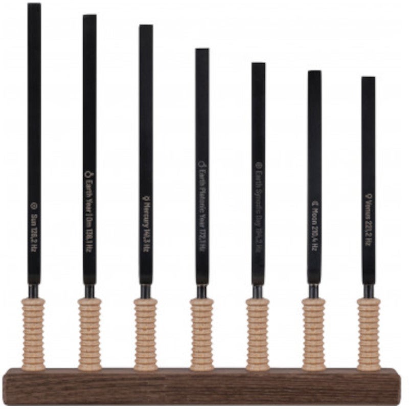 De Schlagwerk STF-CH Tuning Forks Chakra Set bevat zeven stalen stemvorken met een mooi handvat van esdoornhout. Het staal werd gezwart (black oxide steel) voor extra duurzaamheid en een stijlvolle, matzwarte kleur. Deze set is erg geschikt voor meditatiesessies, yoga en ook fonoforese. De zeven stemvorken hebben verschillende frequenties die elk een ander effect hebben en inwerken op andere aspecten van je geest en je bewustzijn.