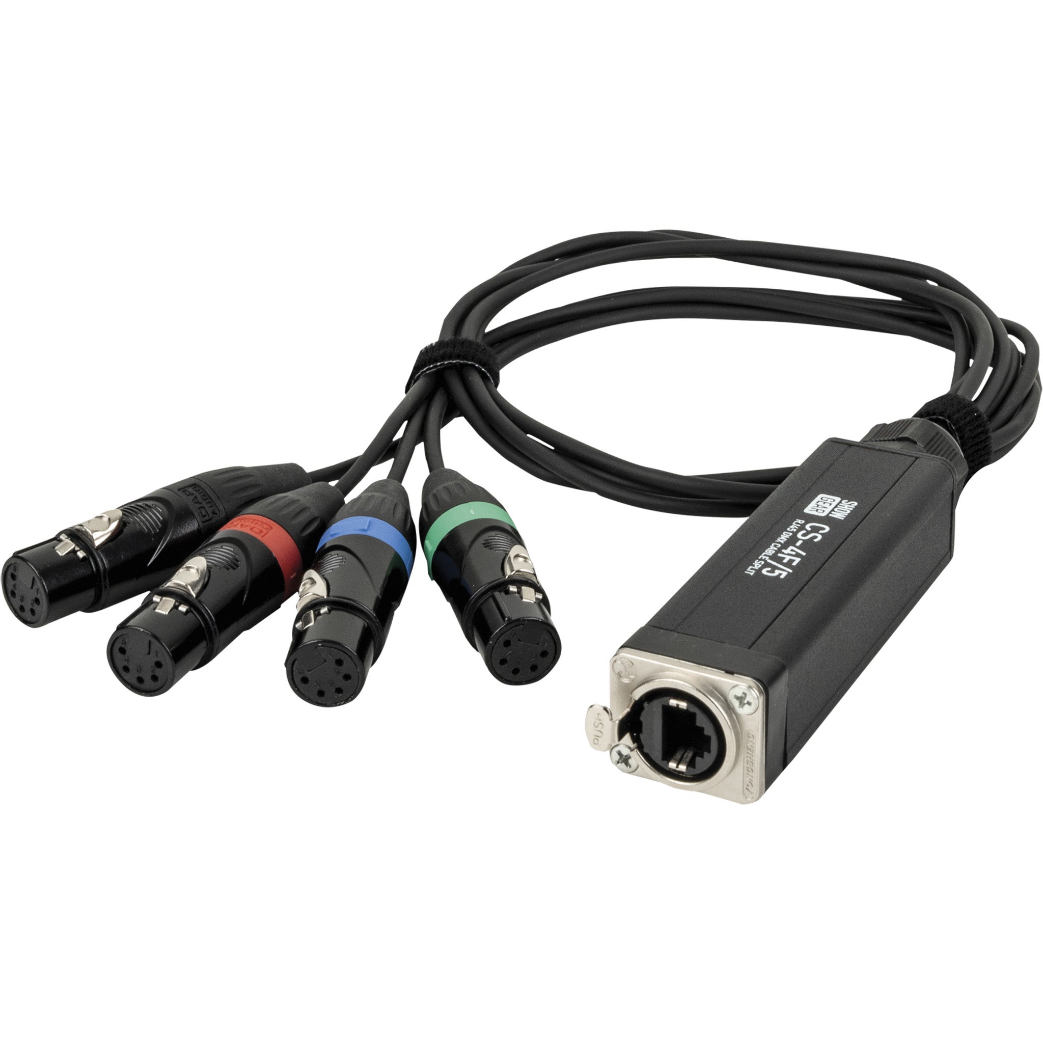 Met deze splitter kun je via één netwerkkabel (RJ45) je DMX-signaal splitsen naar vier aparte kanalen (3-pin XLR female), waardoor je minder kabels nodig hebt en je setup een stuk overzichtelijker wordt. De Showgear CS-4F/5 heeft een duidelijke kleurcodering om verwarring van kanalen te voorkomen. Sluit je netwerkkabel aan in het aansluitblok en hij splitst de DMX kanalen uit naar 4 XLR kabels met een lengte van 75 cm. Met een impedantie van 110 Ohm is hij ideaal voor DMX signalen. Naast makkelijk in gebruik te zijn, weegt hij ook erg weinig: 270 gram. Kortom: minder gedoe, meer show!