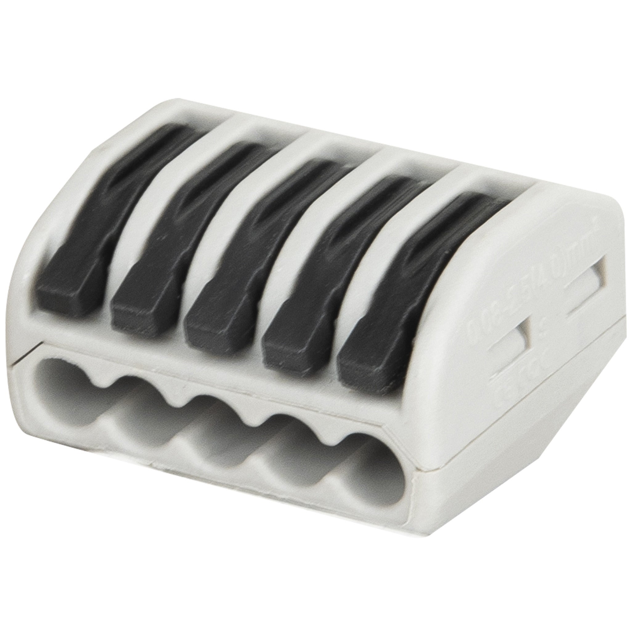 Maak het jezelf makkelijk met de Showgear 5-weg kabelterminal! Deze compacte connector is ideaal voor het aansluiten van ledstrips en ledarmaturen zonder dat je gereedschap nodig hebt. Met vijf ingangen en ondersteuning voor kabeldiameters van 0,08 tot 2,5 mm² sluit je eenvoudig verschillende kabels aan, allemaal veilig en snel. Een betrouwbare, veelzijdige keuze in een handige grijs-zwarte behuizing, perfect voor al je indoor verlichtingsprojecten!