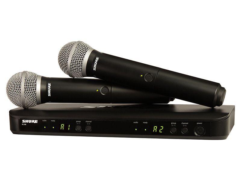 The BLX288/PG58 Dual Channel Handheld Wireless System is part of the BLX wireless systems family. Shure BLX® Wireless Systems combine professional-quality sound with simple setup and an intuitive interface for legendary audio performance right out of the box. Precision-built and available in a variety of configurations, it’s the most accessible way to own the stage. Includes 2 PG58 handheld transmitters, BLX88 dual-channel receiver, 2 microphone clips, power supply, 4 AA batteries, and user guide. Deze set bestaat uit: – 2x Shure PG58 microfooncapsule – 1x Shure BLX2 handzender – 1x Shure BLX88 dubbele ontvanger