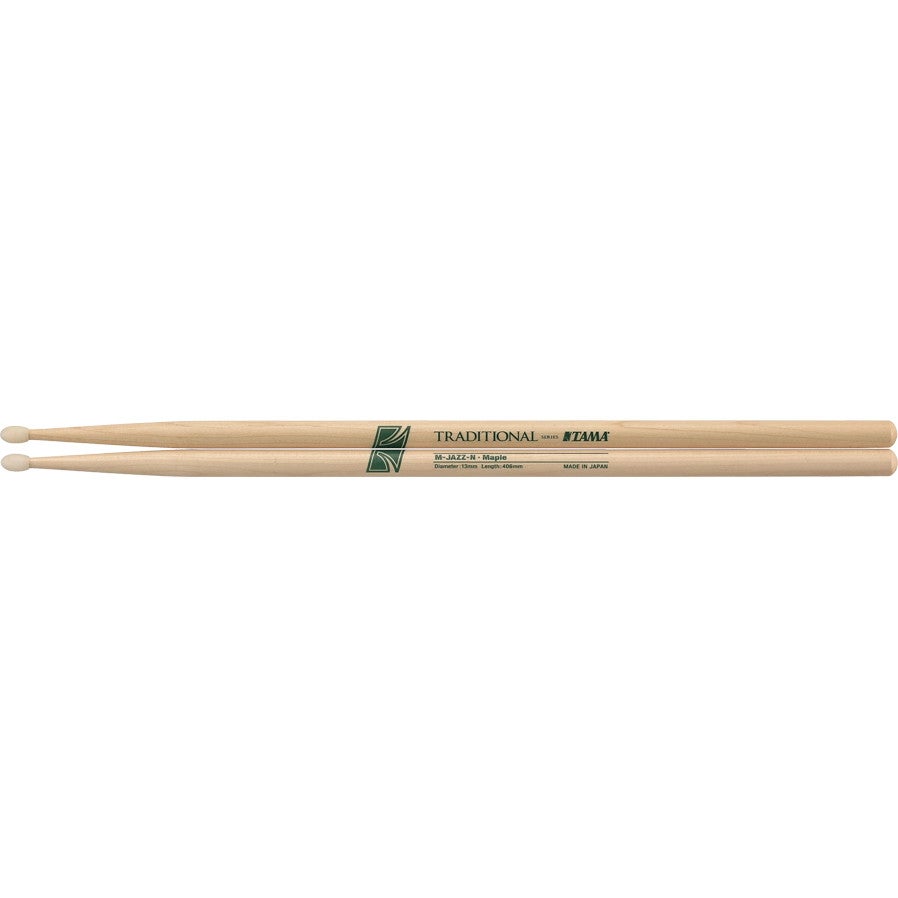 Het ontwerp van deze Tama MJAZZ-N komt precies overeen met het originele model – echter met een groot verschil: ovale nylon tips! Deze nylon tips zorgen voor een flinke attack, waarmee jouw werk op je hi-hat of ride echt goed naar voren komt. Daarbij zijn ze ook erg duurzaam, waardoor de tips vrij lang mee kunnen gaan. Deze stokken zijn gemaakt van esdoornhout (maple) en zijn erg wendbaar. De stokken hebben een diameter van 13mm en een lengte van 406mm.