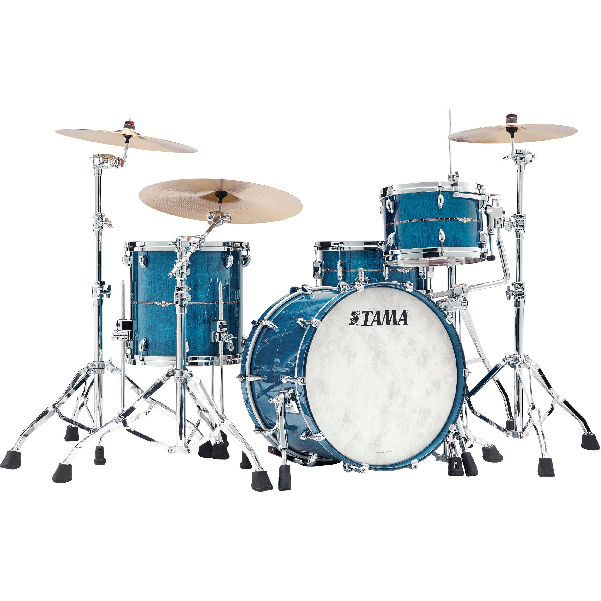 Deze STAR ketelset is uitgerust met hoogwaardige hardware, waaronder het Super Resonant tom-montagesysteem, Quick-Lock Tom Brackets, floortom poten met geluiddempende rubberen voetjes, die-cast spanranden, Hold-Tight ringen en Remo vellen. De set wordt
