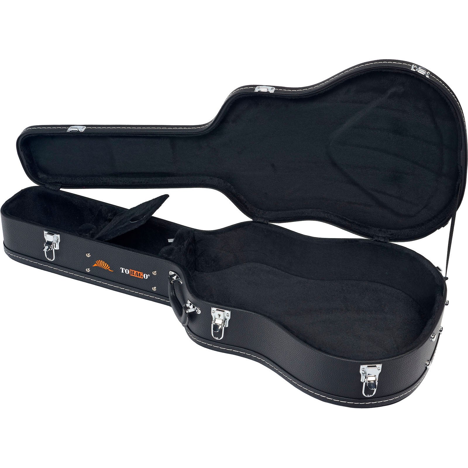Met de Tobago AD3 hardcase vervoer je je westerngitaar op een veilige manier. Deze koffer is geschikt voor dreadnought modellen en werd aan de buitenkant bekleed met zwart kunstleer. Het interieur is van zacht pluche dat je gitaar beschermt tegen schokken en krassen voorkomt. Er is ook een extra compartiment waarin je allerlei accessoires kan opbergen, zoals reservesnaren, plectrums of een tuner. Deze koffer heeft een ergonomisch handvat waarmee je hem gemakkelijk kan dragen, en hij kan ook op slot.