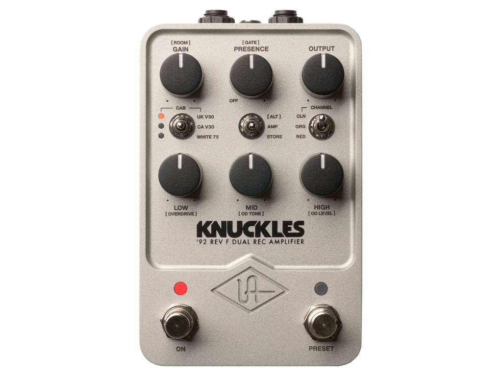 Ontdek de essentie van Punk, Alternative Rock en Metal met het Universal Audio Knuckles '92 Dual Rec Amplifier-pedaal. Dit effectenpedaal biedt een authentieke emulatie van de legendarische high-gain versterkers die het geluid van bands als Foo Fighters, Incubus, Dream Theater en Nevermore hebben gedefinieerd. Met 6 klassieke combinaties van microfoons en luidsprekers, ingebouwde overdrive en boost, en een ruisonderdrukking, haal je het rauwe, energieke geluid van deze iconische versterker rechtstreeks naar je pedalboard.